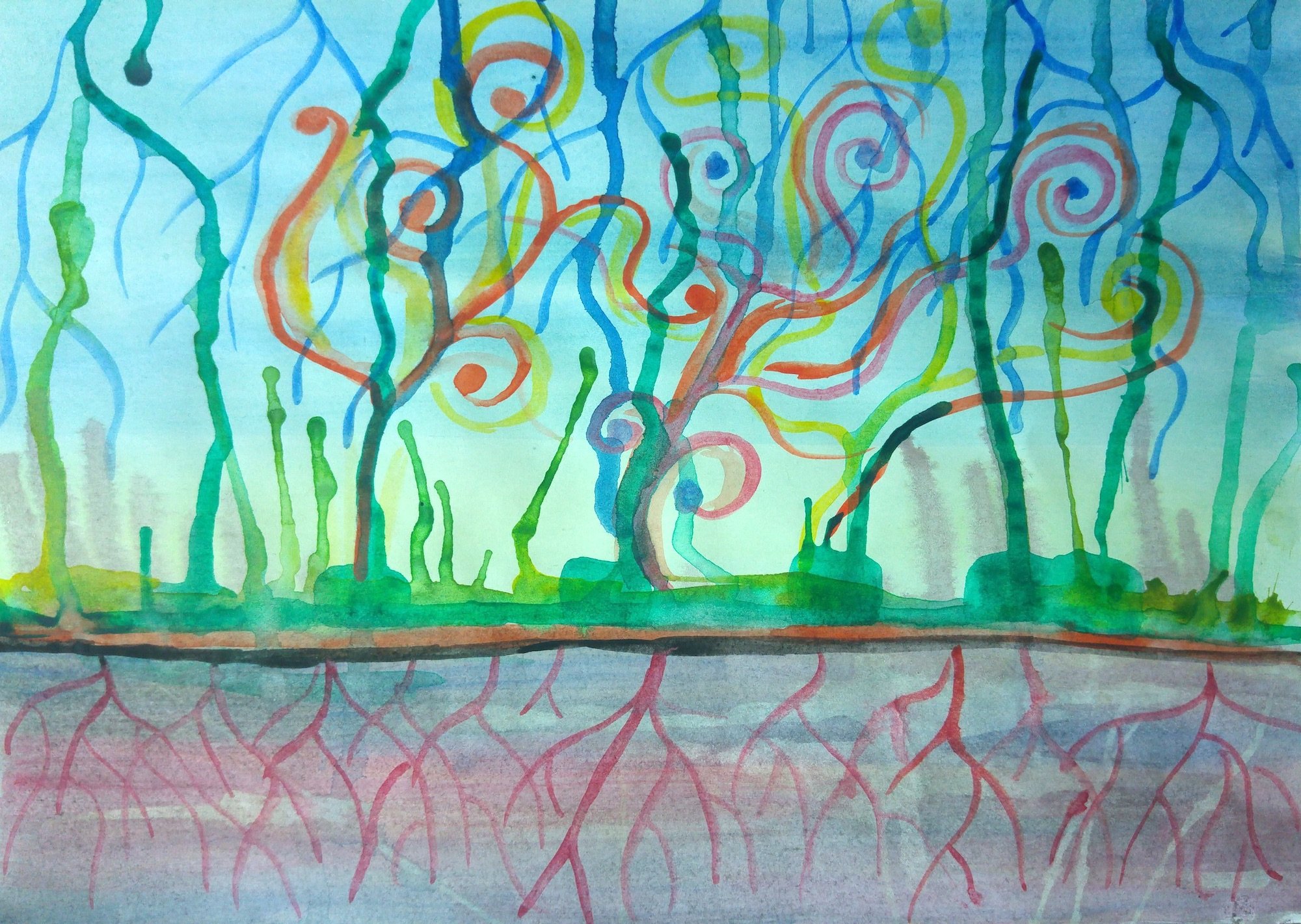 A fantasy seabed habitat, part of my experimental watercolour series, inspired by the movement of wet paint.